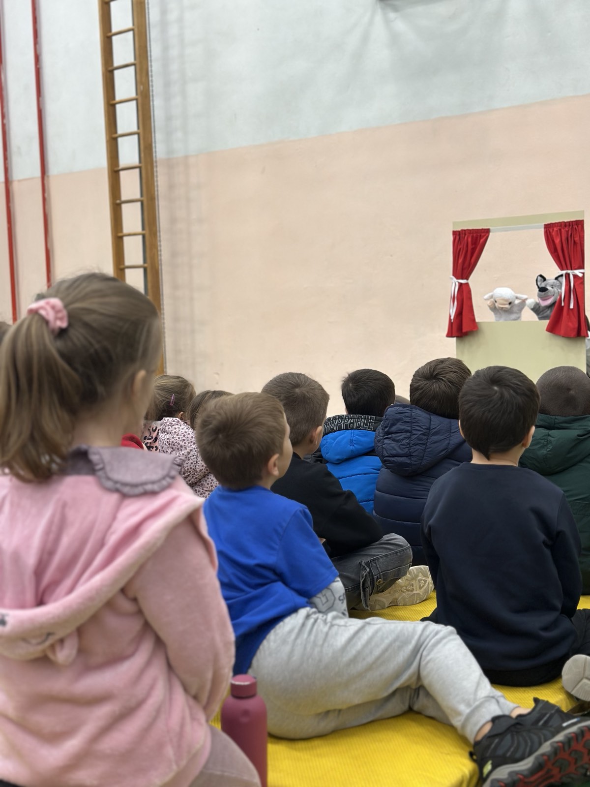 Претставата, која магично ја изведе нашата драга Аниматорка Марија, ги воодушеви сите! Благодарност до Аниматорката Марија! 💖 Децата со големо внимание ги следеа авантурите на симпатичните ликови: Овцата Бела и Волкот Вуле.